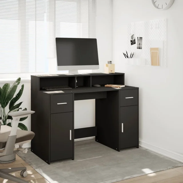 vidaXL Pisalna miza z LED lučkami črna 120x55x91 cm inženirski les