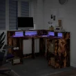 vidaXL Pisalna miza z LED lučkami dimljeni hrast 130x130x91cm inž. les