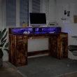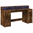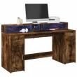 vidaXL Pisalna miza z LED lučkami dimljeni hrast 160x55x91 cm inž. les