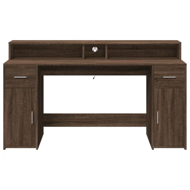 vidaXL Pisalna miza z LED lučkami rjavi hrast 160x55x91 cm inž. les