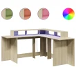 vidaXL Pisalna miza z LED lučkami sonoma hrast 152x152x91 cm inž. les