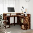 vidaXL Pisalna miza z LED lučkami dimljeni hrast 130x130x91cm inž. les