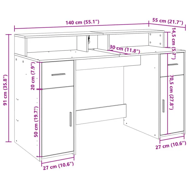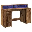 vidaXL Pisalna miza z LED lučkami starinski les 140x55x91 cm inž. les