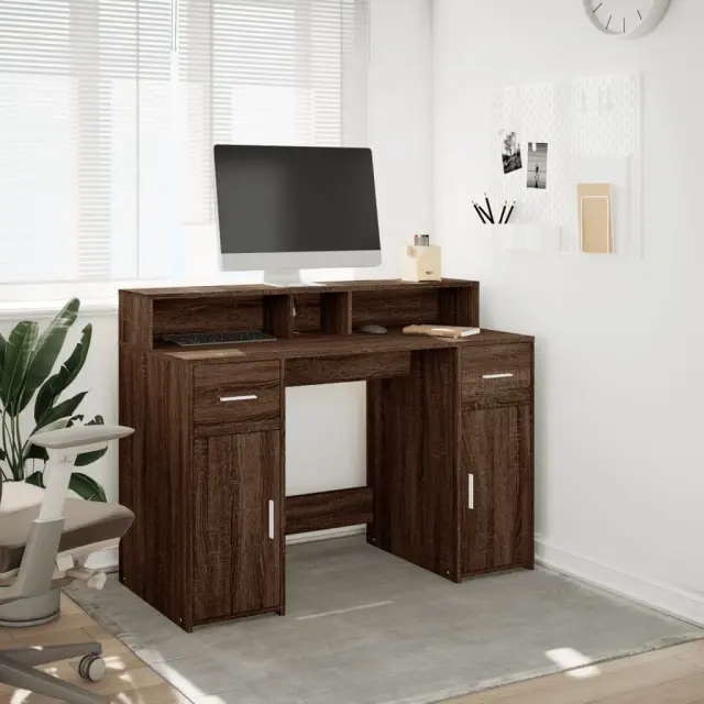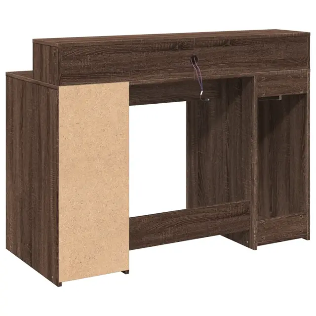 vidaXL Pisalna miza z LED lučkami rjavi hrast 120x55x91 cm inž. les