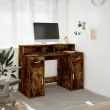 vidaXL Pisalna miza z LED lučmi dimljeni hrast 120x55x91 cm inž. les