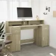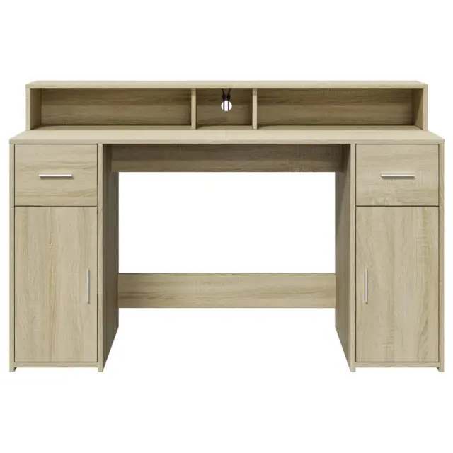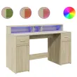 vidaXL Pisalna miza z LED lučkami sonoma hrast 140x55x91 cm inž. les