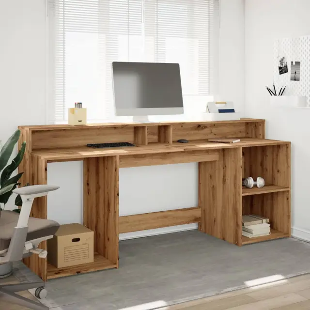 • Veliko prostora za shranjevanje: Pisalna miza ima odprte predelke in police, ki ponujajo veliko možnosti shranjevanja vseh pisarniških potrebščin ter pomagajo ohranjati delovni prostor urejen in brez nereda.