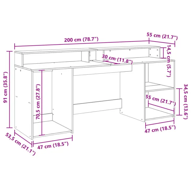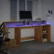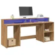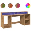 vidaXL Pisalna miza z LED lučkami artisan hrast 200x55x91 cm inž. les