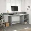 vidaXL Pisalna miza z LED lučkami betonsko siva 200x55x91 cm inž. les