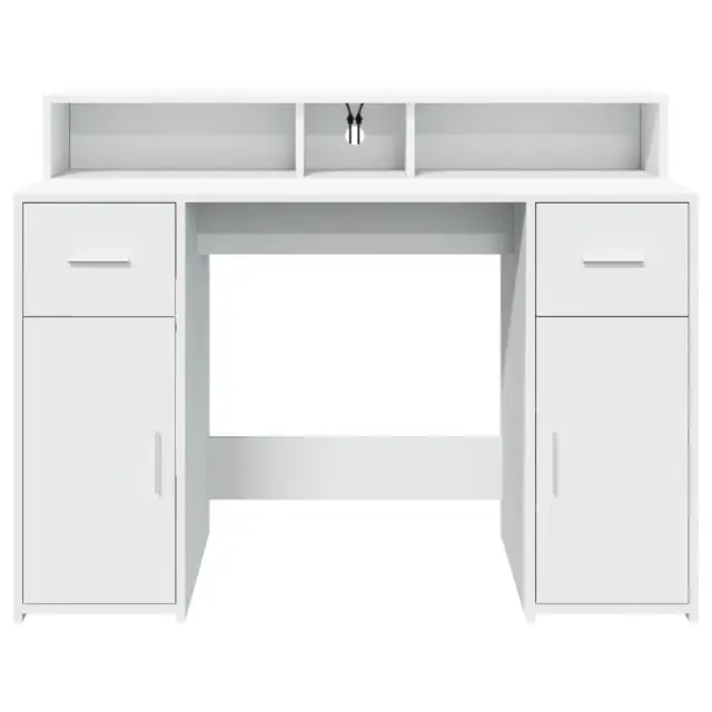 vidaXL Pisalna miza z LED lučkami bela 120x55x91 cm inženirski les
