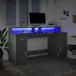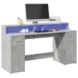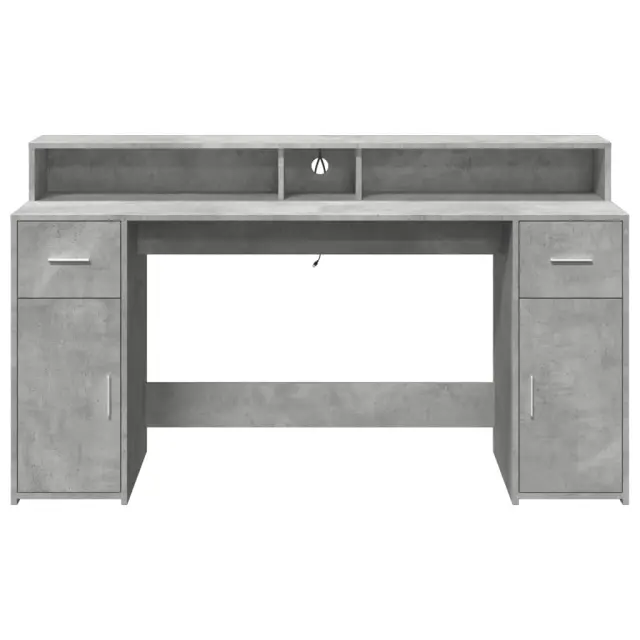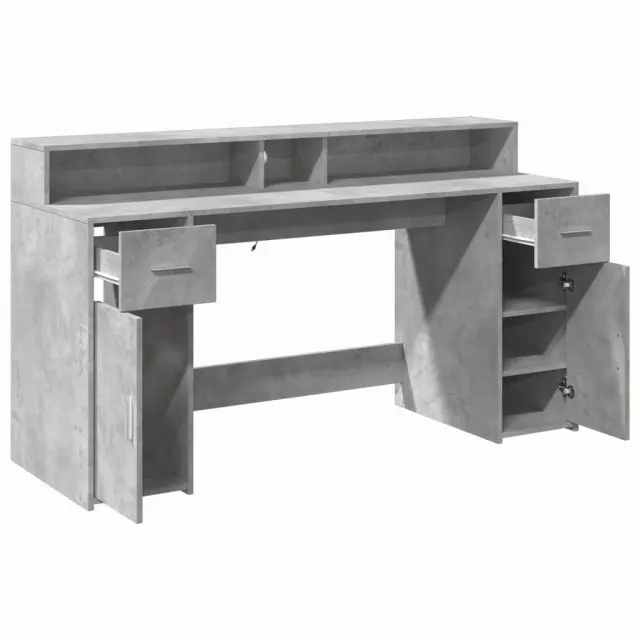 vidaXL Pisalna miza z LED lučkami betonsko siva 160x55x91 cm inž. les