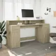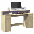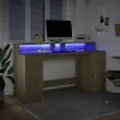 vidaXL Pisalna miza z LED lučkami sonoma hrast 160x55x91 cm inž. les