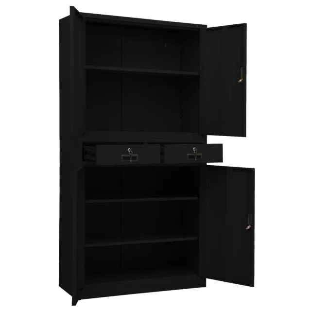 Ta jeklena pisarniška omara je vzdržljiva in preprosta za čiščenje. Ima 3 nastavljive police, zato ta omara omogoča urejeno sortiranje dokumentov v različne kategorije, da bodo ostali na varnem. Predali s 3 krogličnimi tečaji zagotavljajo gladko odpiranje in zapiranje, tudi pod obremenitvijo. Omara z ikoničnim dizajnom se bo podala k dekorju v vsaki pisarni.