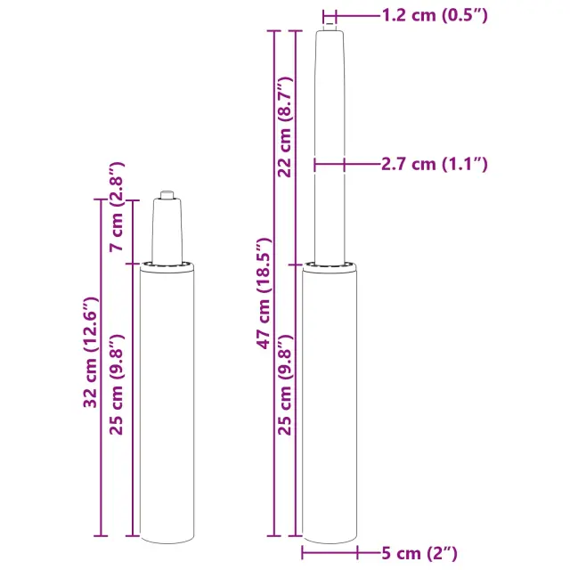 • Splošne dimenzije: 5 x 5 x 47 cm (D x Š x V)