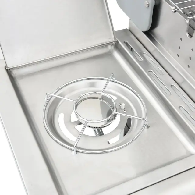 • Veliko prostora za kuhanje: Zunanji žar imamo veliko kuhalno površino, stranski gorilnik pa ponuja dodaten delovni prostor za pripravo omak ali vaših najljubših prilog.