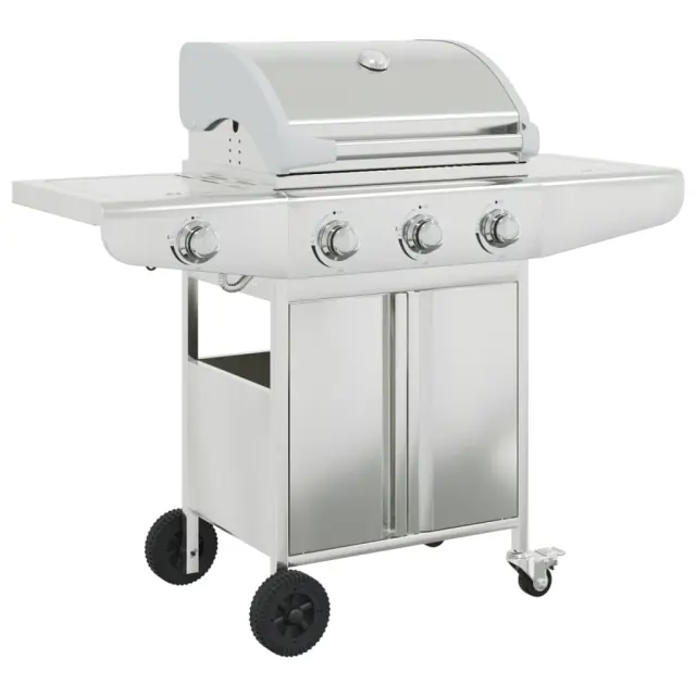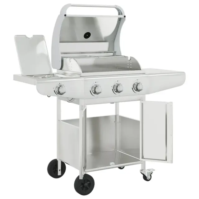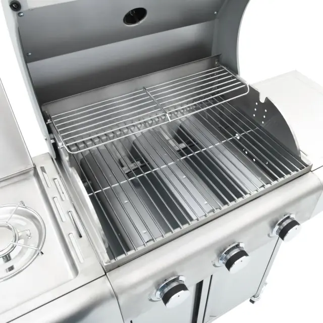 vidaXL Plinski žar s 4 gorilniki srebrno nerjaveče jeklo