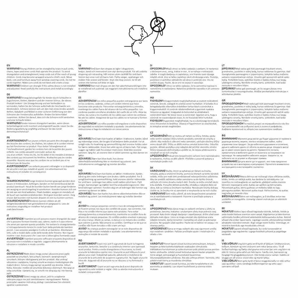 • Vrvice hranite izven dosega majhnih otrok. Vrvice se lahko ovijejo okoli otrokovega vratu.