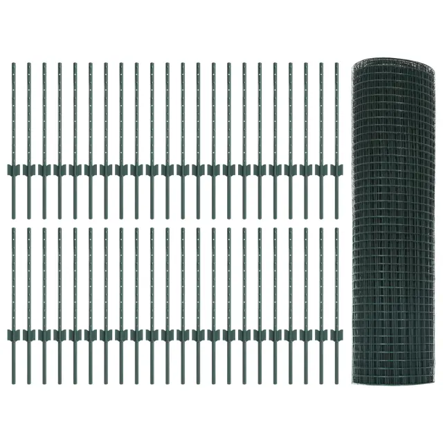 vidaXL Pocinkana žična ograja z 44 U drogovi Zelena 0.5x100 m Jeklo