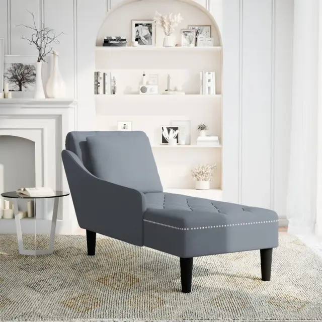 vidaXL Počivalnik z vzglavnikom in desnim naslonom za roke sivo