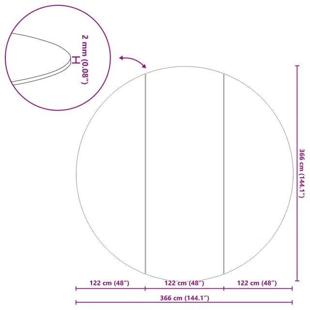 • Splošne dimenzije: 366 x 366 x 0,2 cm (D x Š x V)