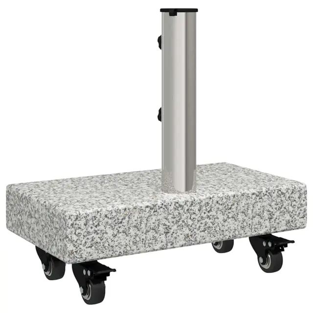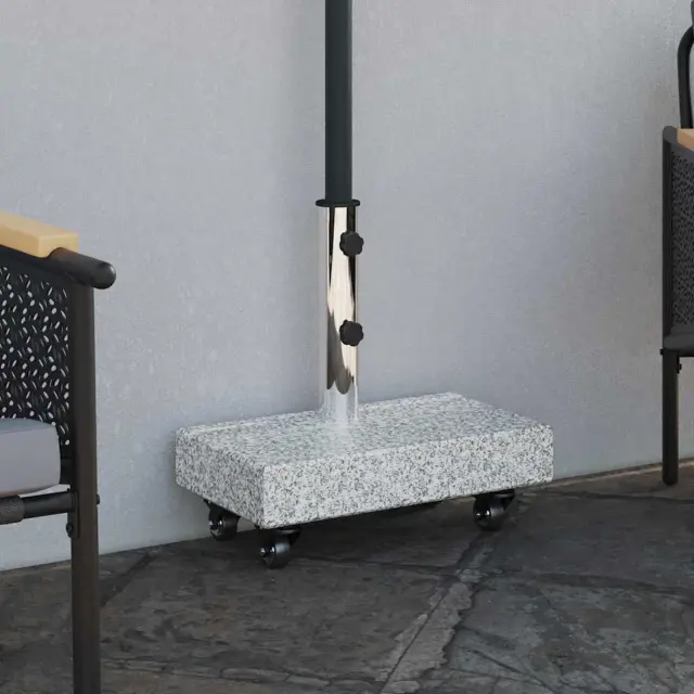 Ta osnova za dežnik je idealna izbira, če želiš dodati stabilnost in stil svojemu vrtu, terasi ali bazenu. Izdelana iz granita, nudi moderno estetiko s čistimi linijami in skromno okrasitvijo, kar se brez težav ujema s tvojim zunanjim dekorjem. Pravilne pravokotne oblike in masa zagotavljata, da odlično dopolnjujejo različne dežnike, medtem ko ohranja stabilen profil, ki je funkcionalen za uživanje na poletnem soncu.