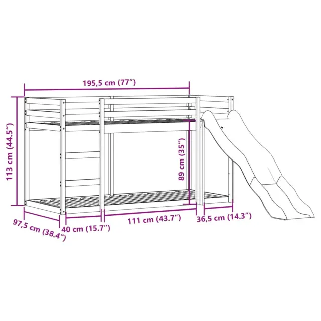 vidaXL Pograd s toboganom in lestvijo 90x190 cm trdna borovina