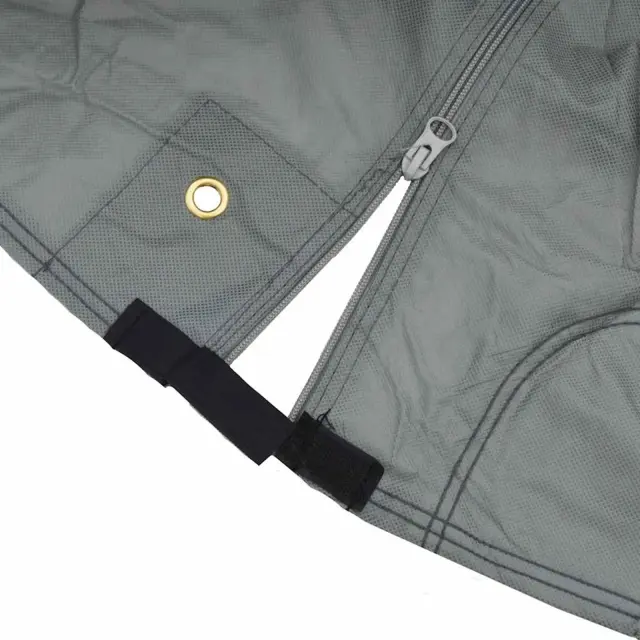 • Vetrovna zasnova: Elastični robovi prevleke zagotavljajo, da se tesno prilega vašemu vozilu, medtem ko nastavljivi trakovi z zaponkami na spodnjem delu prevleke poskrbijo, da je prevleka varno nameščena tudi v dneh z močnim vetrom. Prevleka ima tudi vponke z vrvicami ter kaveljčke in zanke okoli zadrge za varno namestitev.