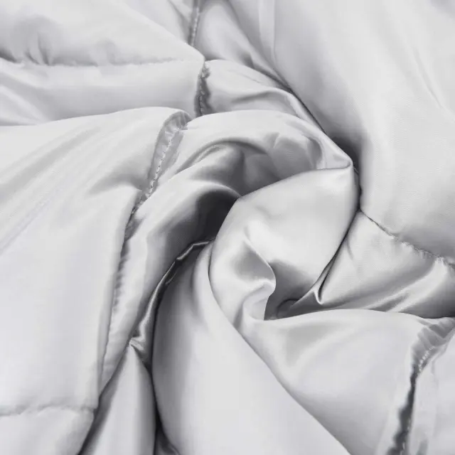 • Satenska in mikrovlaknena sestava Ta moderna poletna odeja je narejena iz trpežne mešanice satena in mikrovlaken, ki nudita maksimalno mehkobo in dolgo življenjsko dobo. Saten doda kanček elegance, mikrovlakna pa nudijo zračnost, kar je čudovito za tople poletne noči.