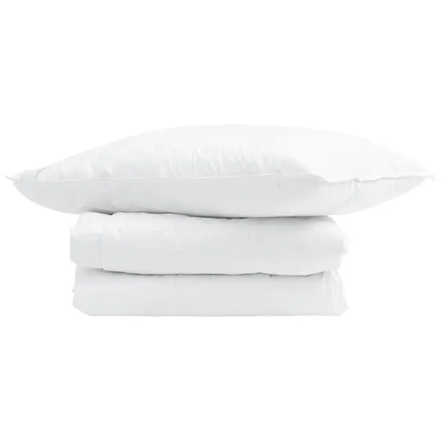 Ta posteljnina in blazina združujeta eleganco in udobje, z minimalističnim a sofisticiranim dizajnom, ki je pravšnji za vsako spalnico. Bela barva posteljnine dodaja svežino in klasičen šarm prostoru. Luksuzno puhasto polnjenje nudi toploto in prijeten dotik, kar je idealno za mirne noči doma. Zračna tkanina poskrbi za prijeten občutek in je primerna za vse letne čase.