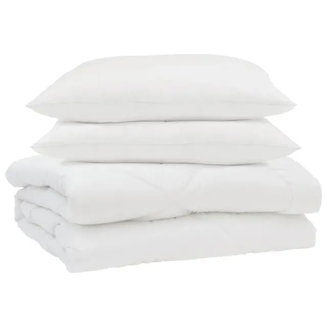 • Vključene komponente Poleg odeje dobite še dve blazini. Vsaka je izdelana iz kombinacije bombaža in poliestra ter napolnjena s poliestrskimi vlakni. Te komponente nudijo celovito podporo za tvojo glavo in vrat, kar prinaša dodatno sprostitev med počitkom.