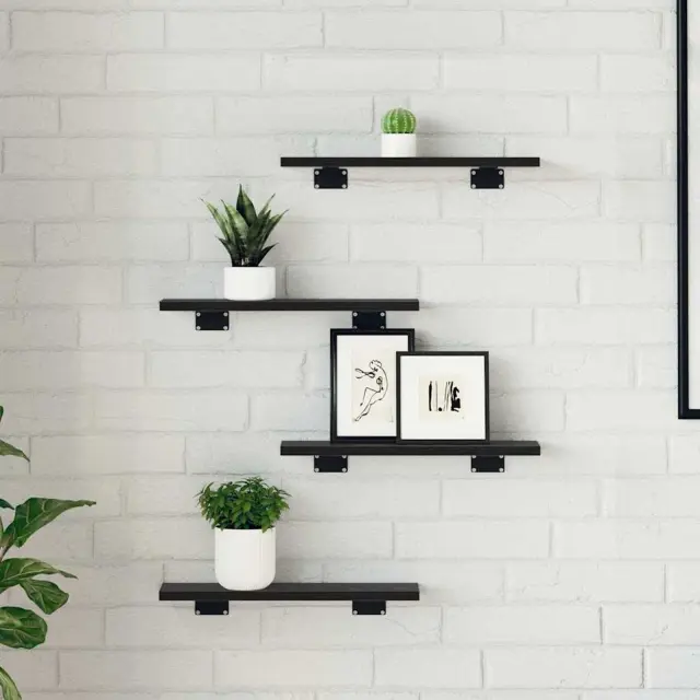 vidaXL Polica za knjige 4 pcs Črna 40 x 10 x 1.5 cm Konstruiran les