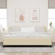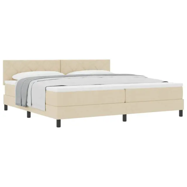 vidaXL Postelja boxspring z vzmetnico krema 200 x 200 cm blago