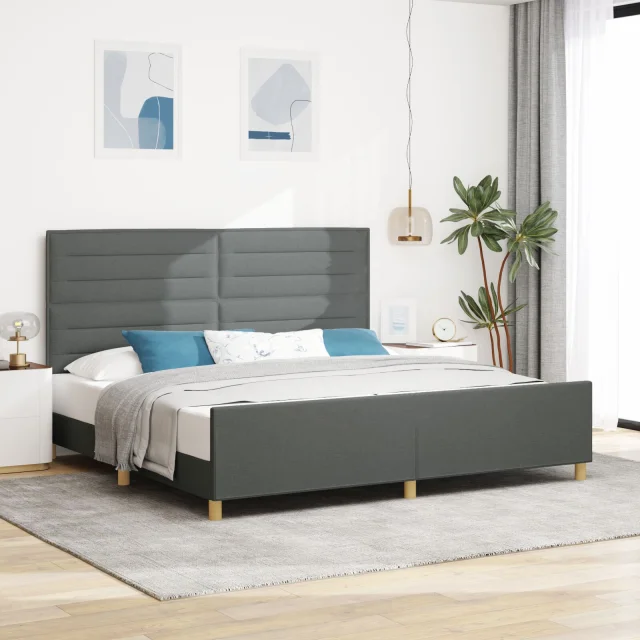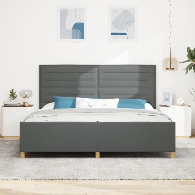 Ta temno sivi posteljni okvir je moden in super izbira za nadgradnjo vašega spalnega prostora, zasnovan, da podpira vašo vzmetnico. Njegov mat finiš in gladka tekstura izgledajo super v moderni spalnici in ustvarjajo mirno vzdušje za dober spanec.