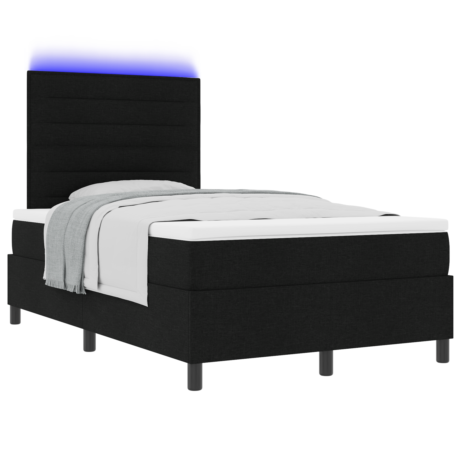 vidaXL Postelja na dnu z vzmetnico & LED Črna 120 x 190 cm Tkanina