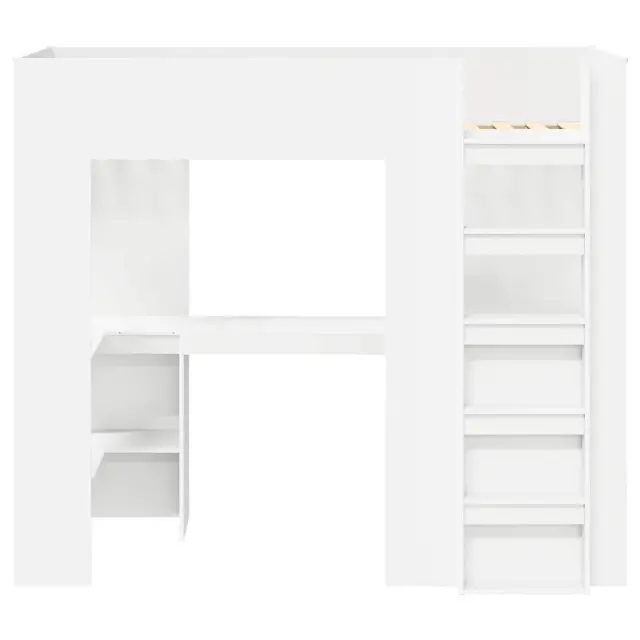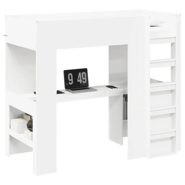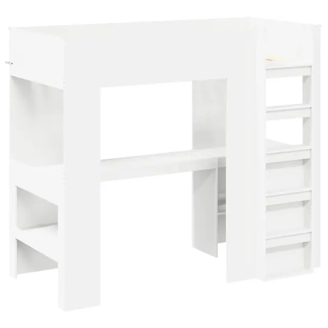 vidaXL Postelja na podstrešju z mizo Bela 80 x 200 cm Konstruiran les
