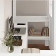 • Vključeni deli: Ta loft postelja vključuje mizo in police, ki nudijo prostor za učenje ali delo. Miza lahko sprejme prenosnik, knjige in druge študijske materiale, police pa nudijo dodano shranjevanje za osebne predmete, kar zagotavlja reden prostor v spalnem okolju.