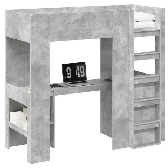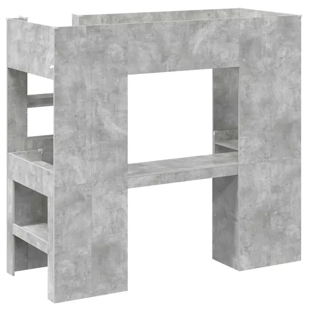 vidaXL Postelja na podstrešju z mizo Betonsko siva 75 x 190 cm