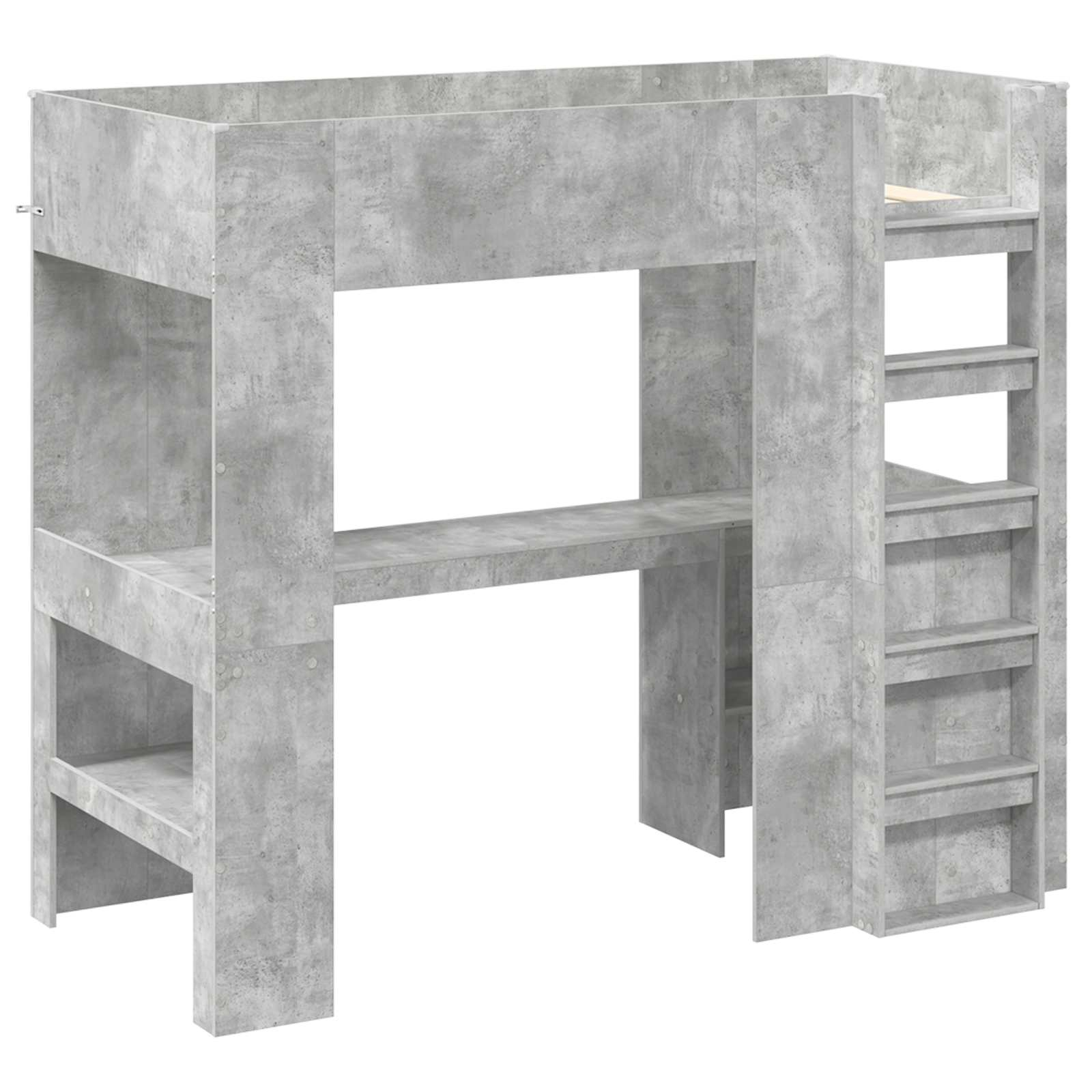 vidaXL Postelja na podstrešju z mizo Betonsko siva 90 x 190 cm