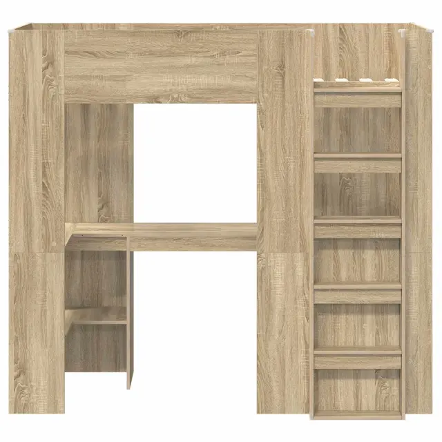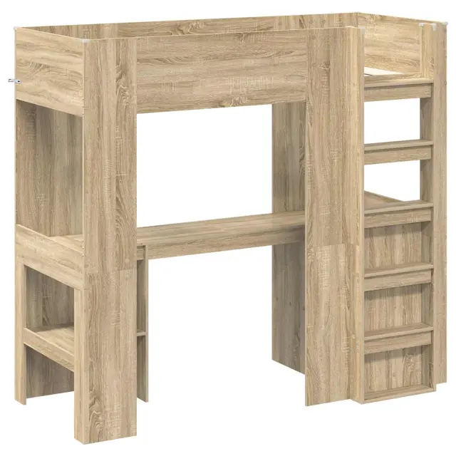 vidaXL Postelja na podstrešju z mizo Sonoma hrast 75 x 190 cm