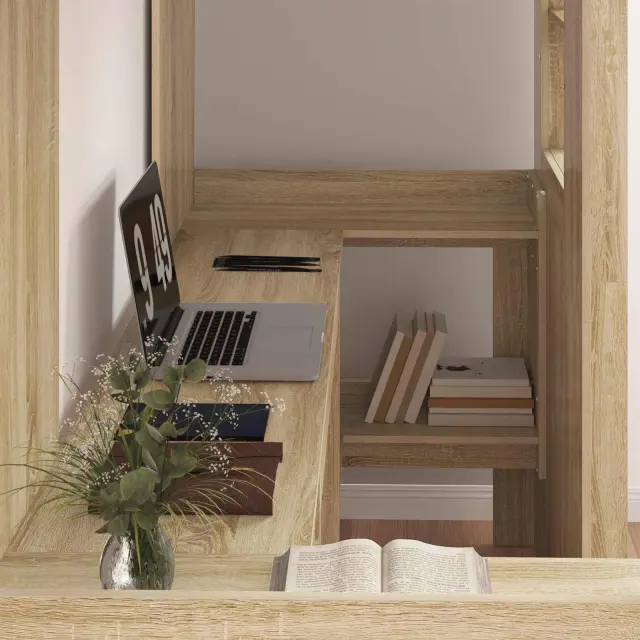 • Vključeni deli: Ta loft postelja vključuje mizo in police, ki nudijo prostor za učenje ali delo. Miza lahko sprejme prenosnik, knjige in druge študijske materiale, police pa nudijo dodano shranjevanje za osebne predmete, kar zagotavlja reden prostor v spalnem okolju.
