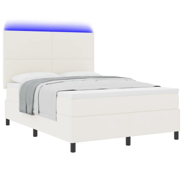 Ta postelja na vzmet združuje sodobno udobje in eleganten videz, kar je popolno za vsako spalnico. Moderna kremna žametna tkanina doda prostoru, hkrati pa ti ponudi prijetno mesto za počitek.
