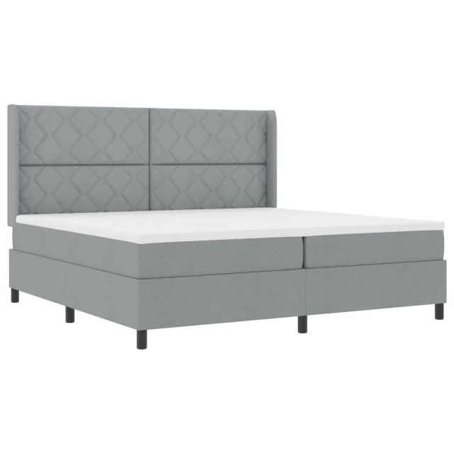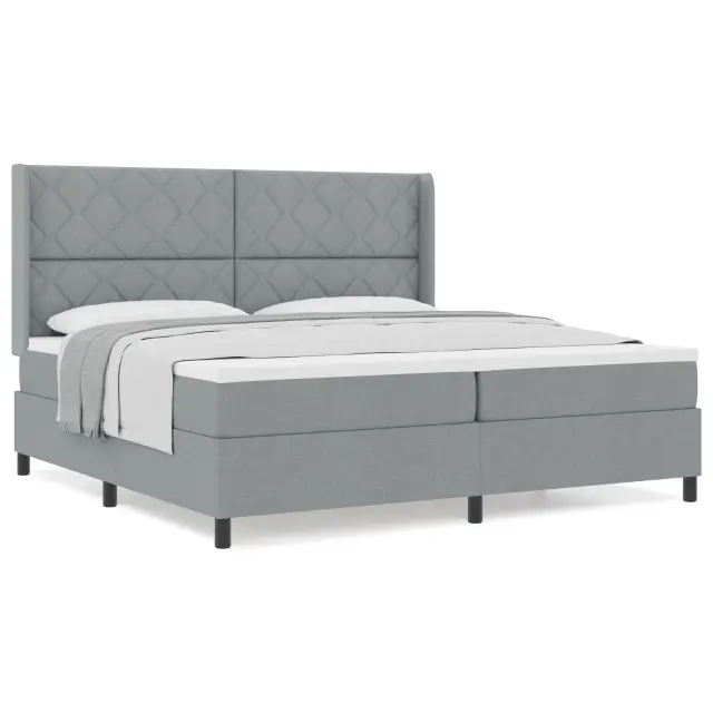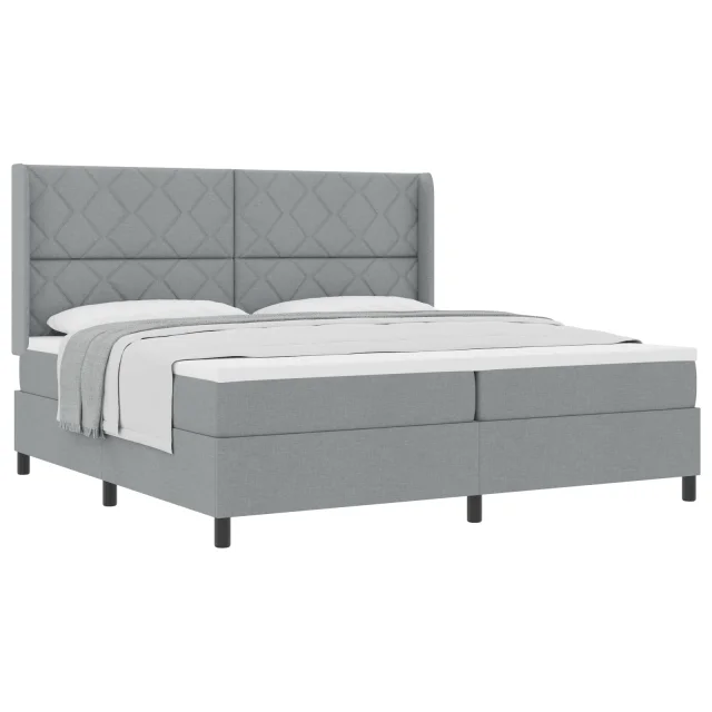 vidaXL Postelja na vzmet z vzmetnico Svetlo siva 200x200 cm Tkanina