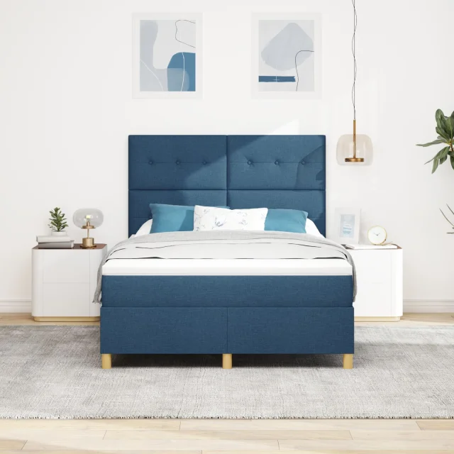 Ta posteljni okvir z gumbnim gretanjem v modri barvi in udobno vzmetnico je čudovit osrednji kos za vsako spalnico, ki zares izboljša vaš spanec. Njegova zasnova se odlično prilega tako tradicionalnim kot modernim postavitvam, kar ga dela idealnega za glavno in gostinsko spalnico, kjer nudi popolno mesto za počitek.