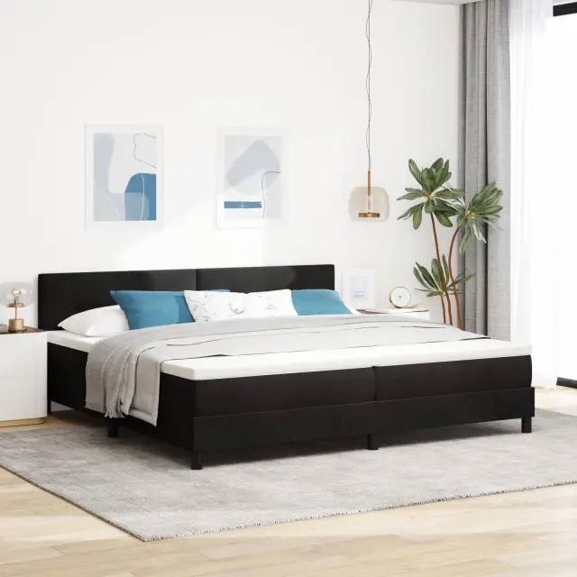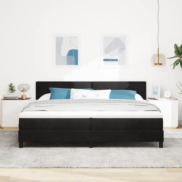 Ta postelja s podnožjem ponuja pravi mix modernosti in funkcionalnosti. Mehak črn žamet izgleda res elegantno. Zasnovana je tako, da te udobno objame, vzmetnica z žepnimi vzmetmi pa podpira tvoje telo, kar je idealno za vse, ki obožujejo dober spanec vsako noč.