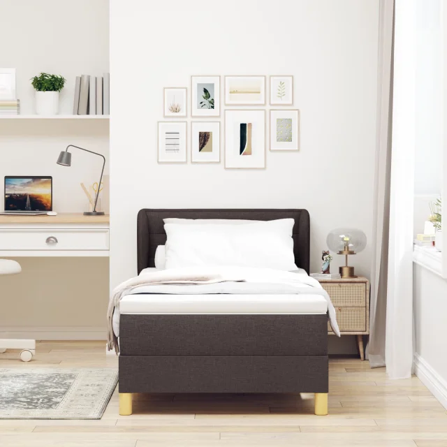 vidaXL Postelja s podnožjem in vzmetnico Temno rjava 100x200 cm Tkanina