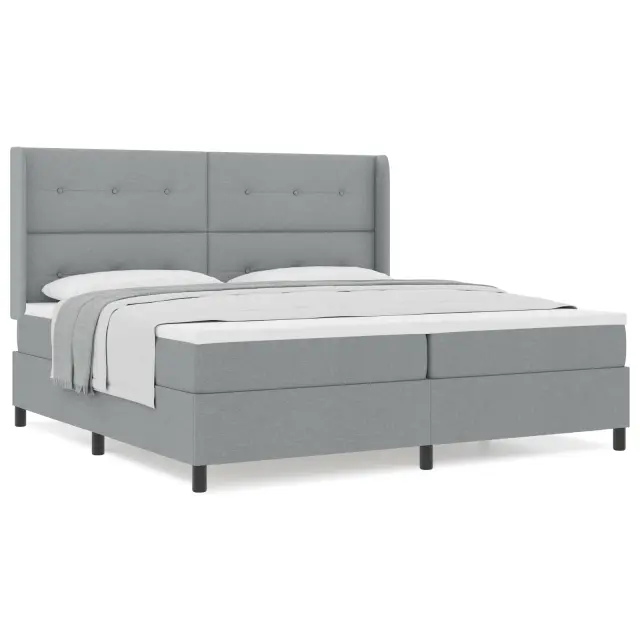 vidaXL Postelja s podstavkom in vzmetnico svetlo siva 200x200 cm tkanina