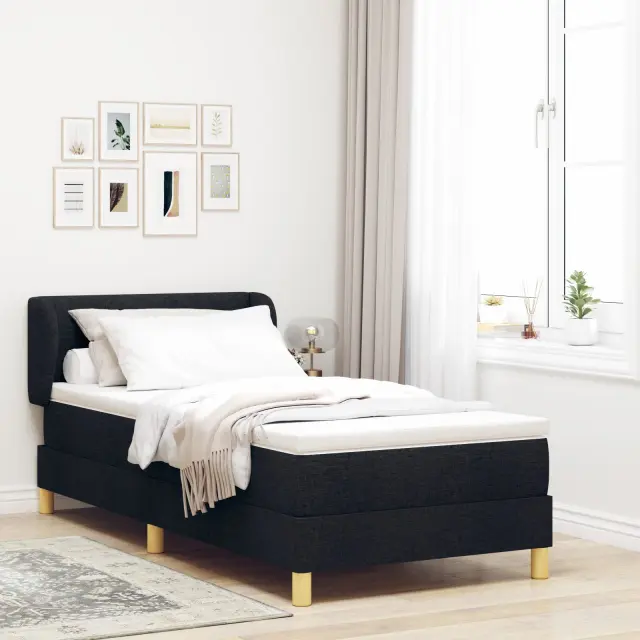 vidaXL Postelja s pomičnim dnom in ležiščem - Črna - 90x200 cm Tkanina