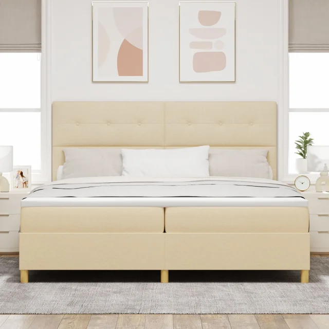 Ta set posteljnega okvirja z gumbi je moderna rešitev za spanje, zasnovana tako, da se ujema z vsakim dekorjem v spalnici. Nežni kremni odtenki in močna konstrukcija dodajo vrednost. Ta set vključuje udobno vzmetnico in podložek, kar ga dela idealnega za odrasle, ki si želijo dober nočni spanec.