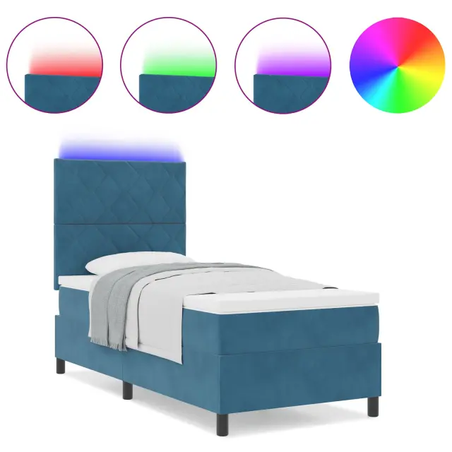 vidaXL Postelja s pomično podlago z vzmetnico in LED temno modra 90x200 cm iz žameta