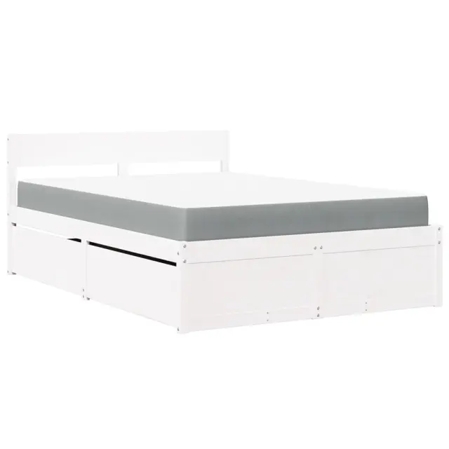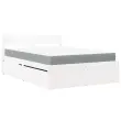 vidaXL Postelja s predali in vzmetnico bela 120x200 cm trdna borovina
